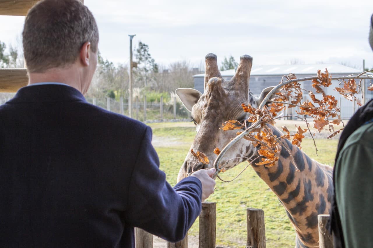 The Conservative MP for Harborough, Oadby and Wigston was introduced to the world’s tallest mammals by CEO, Dr Sharon Redrobe OBE at the zoo’s Giraffe Savannah. The purpose-built facility with a large house and communal stable area and outdoor paddocks that open on to a savannah grassland was the first new enclosure to be built as part of the zoo’s 20-year masterplan back in 2014. Since then, new habitats for Gibbons, Chimpanzees and critically endangered Sumatran tigers have opened to the public.